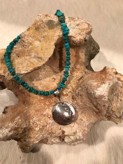 Turquoise coin necklace, 16" necklace comes with a 2" extension